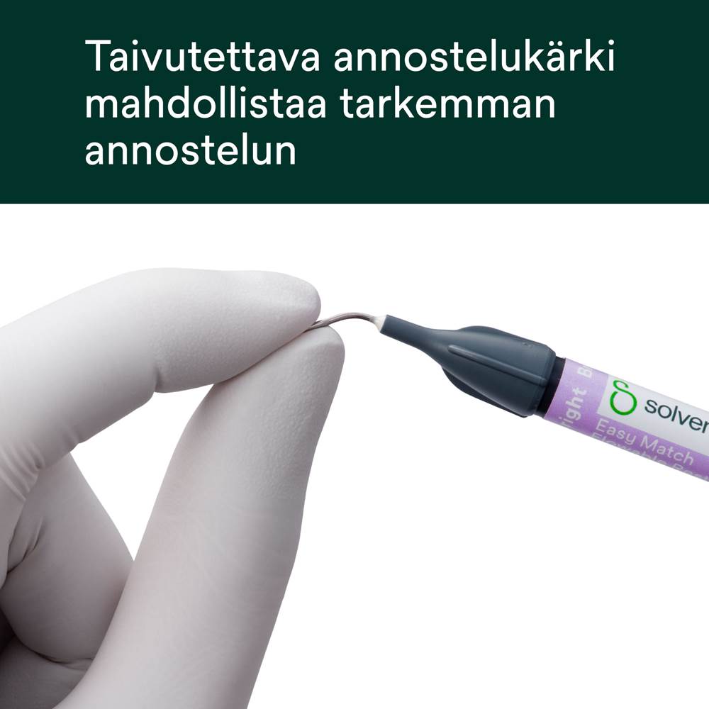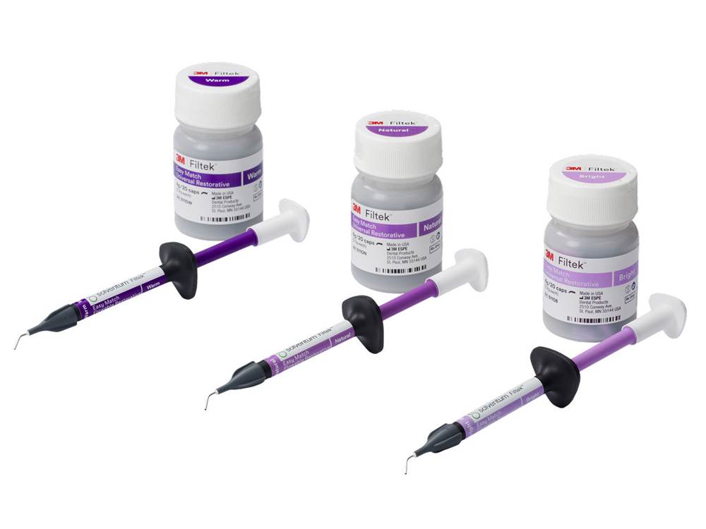 Voidaan käyttää sellaisenaan tai yhdessä 3M™ Filtek™ Easy Match -yhdistelmämuovin kanssa. Bright-, natural- ja warm-sävyt tarjoavat erinomaisen värien yhteensopivuuden useimpien potilaiden hymyihin.