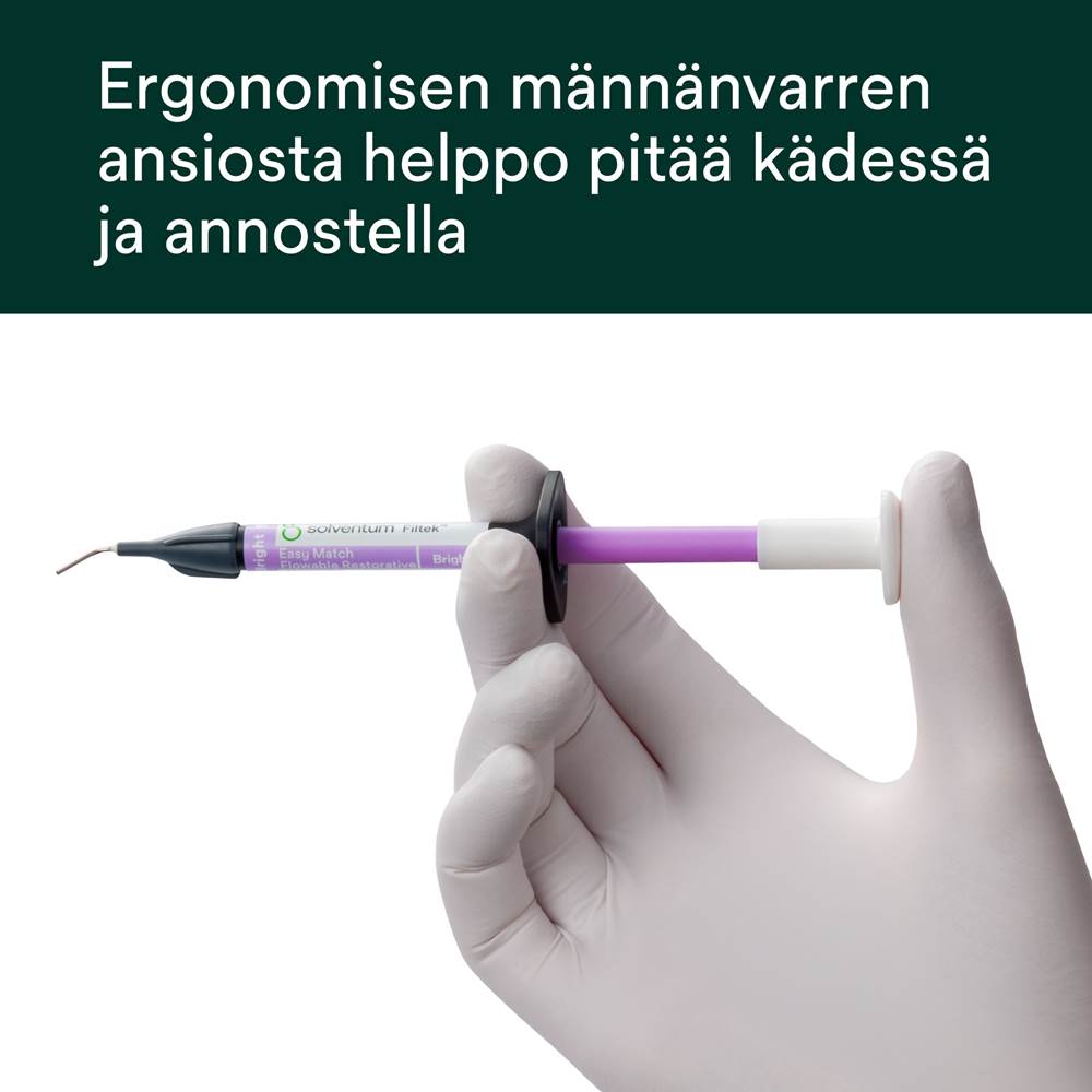Filtek Easy Match Flowable -yhdistelmämuovi täydentää Filtek Easy Match -yhdistelmämuovia.