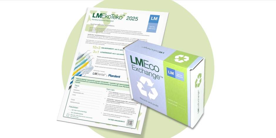LM-EkoTeko-kierrätyskampanja järjestetään Hammaslääkäripäivien yhteydessä 6.–7.11.2025, ja tarjouskampanja on voimassa kahden viikon ajan 3.−16.11.2025. Voit palauttaa käytetyt instrumenttisi joko LM-Dentalin Hammaslääkäripäivien messuosastolle 1g8 tai sopia instrumenttien palautuksesta erikseen Plandent-tarveainemyyjäsi kanssa.